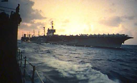 From mid-December 1966 to mid-March of 1967, USS Gearing was part of the 6th fleet. Below are snapshots of USS America CVA-66 viewed from the deck of the Gearing. The refueling photos were taken prior to arrival in Piraeus on 4 February, probably in the Ionian Sea east of Sicily. |