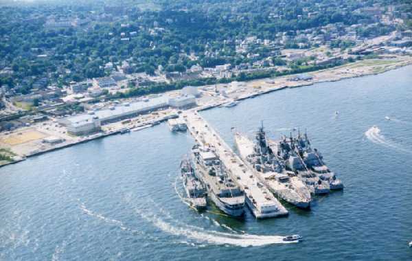 [Previous] [NEXT] This is the U.S. Navy's Staten Island home port at Stapleton. Is that the Battleship Wisconsin BB-64? Wisconsin and Missouri were in the Persian Gulf in early 1991. Wisconsin was homeported in Norfolk and Missouri on the west coast. Wisconsin was decommissioned in September 1991. Can anyone ID these ships? Email Don Provost. |
