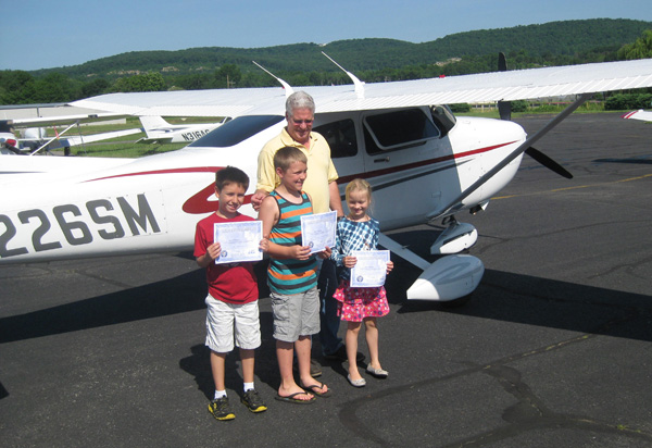Pilots: Greg Dwyer (Cessna 182), Mike Dzurny (Luscombe 8E), Larry Kalb (Cessna Cardinal), Ron Reinartz (Beech A36 Bonanza), and Jeff Ross (Piper Arrow).