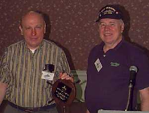 ![]() | Dan Donohue (FTG3 64-66), Association Treasurer, receives plaque of appreciation from President Carl Lloyd (RM3 45-46) |