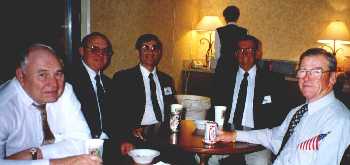 L to R: ______,Tom Howard (ETSN 50-54), Don Hentges (EM2 58-61), Russ Stickles (RD2 50-54), _____ , _____.