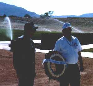 _____ , and Frank Schleis (BM2 45-46) conduct the memorial service.