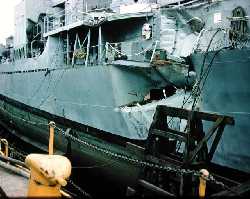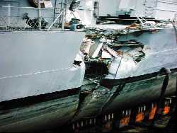 "Shots (above and 2 below) of thedamage after we were rammed off of Norfolk."