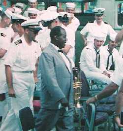 ![]() Louis Armstrong plays for Gearing crew on the pier at Abidjan, Ivory Coast in 1960.