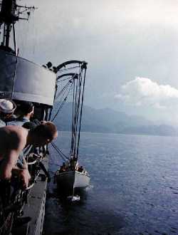 "Lowering the Captain's gig. Thinkwe were near Cuba on this shot." |