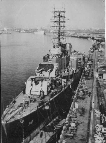 USS Gearing DD-710 being outfitted February-April 1945.