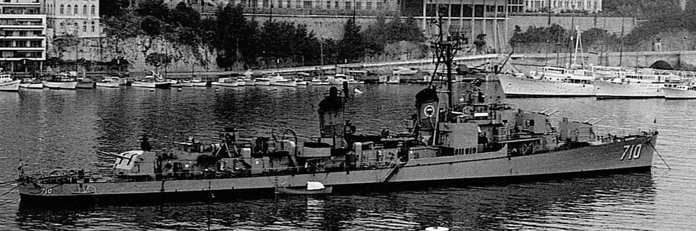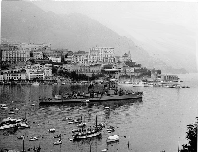 Photo from Ronald Masnik (LTjg, DCA 57-60)On October 16, 2009, Ronald Masnik emails... Having found The Gearing website and association this past spring, I have joined the group and noticed that you have a site on the history, photos etc about the ship. I found the attached photo while repacking some old boxes, etc. It is the ship moored in Monaco over Xmas 1957 taken by a professional photographer in the Principality. If you enlarge the photo, you can see the Xmas tree we placed on top of Mt 53.![]() ![]()