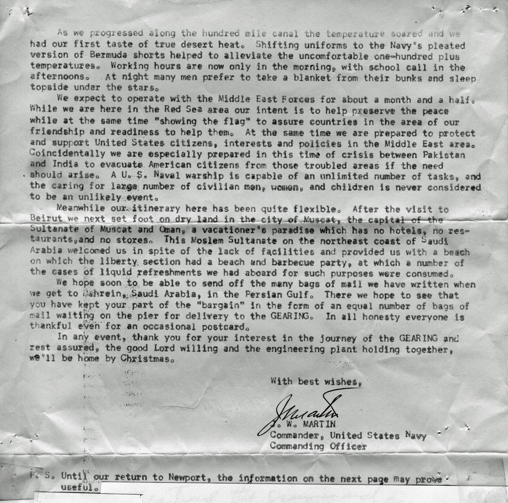 Captain Martin personally signed each one that was sent.