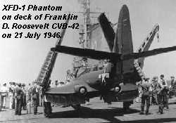 to shipboard operation, an XFD-1 Phantom piloted by Lieutenant
