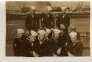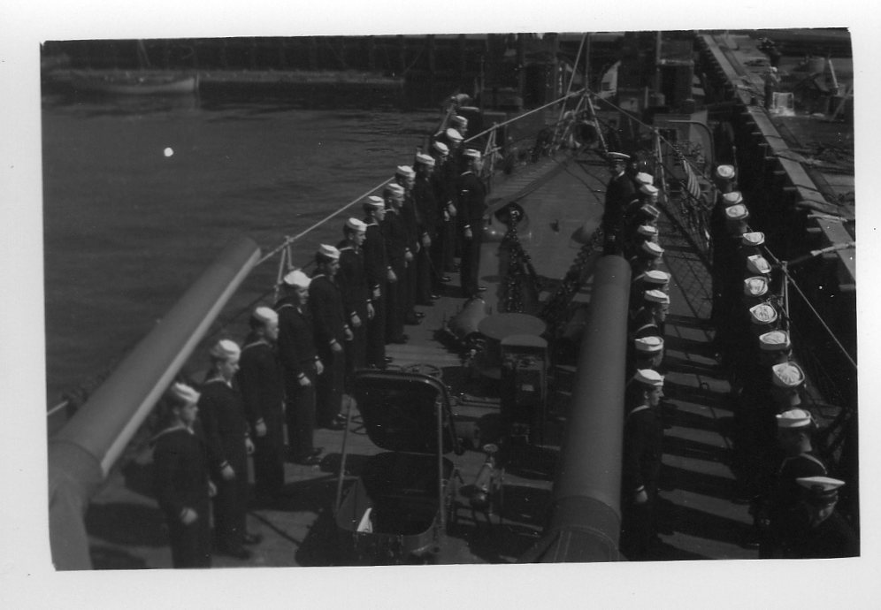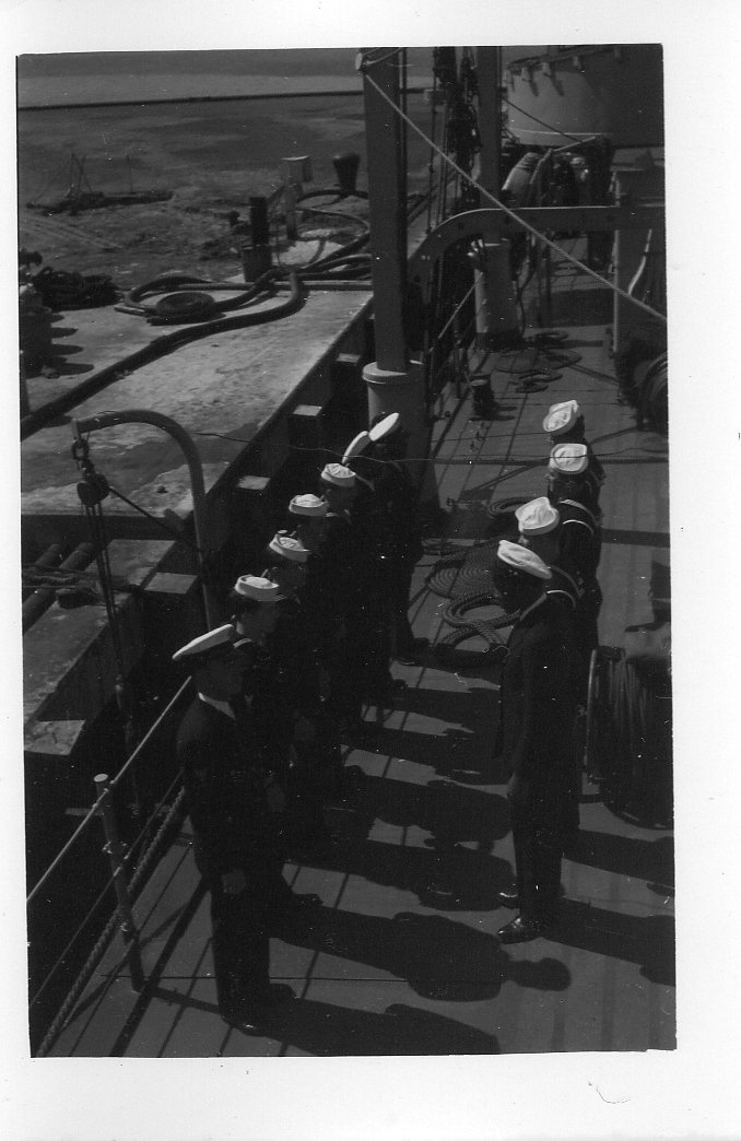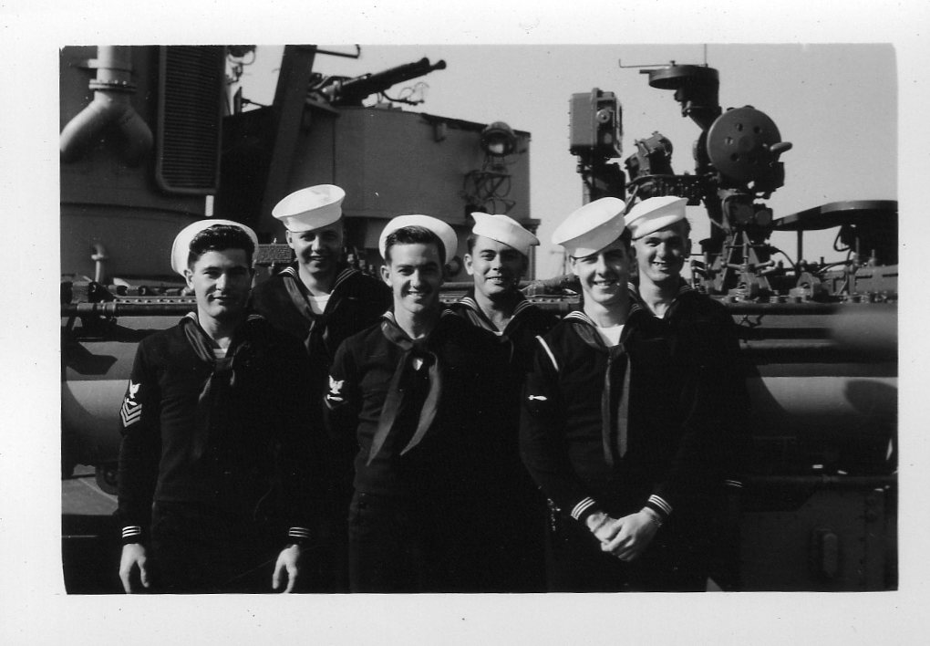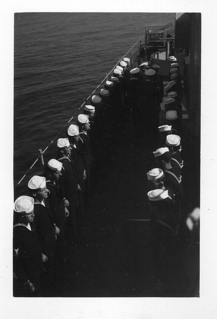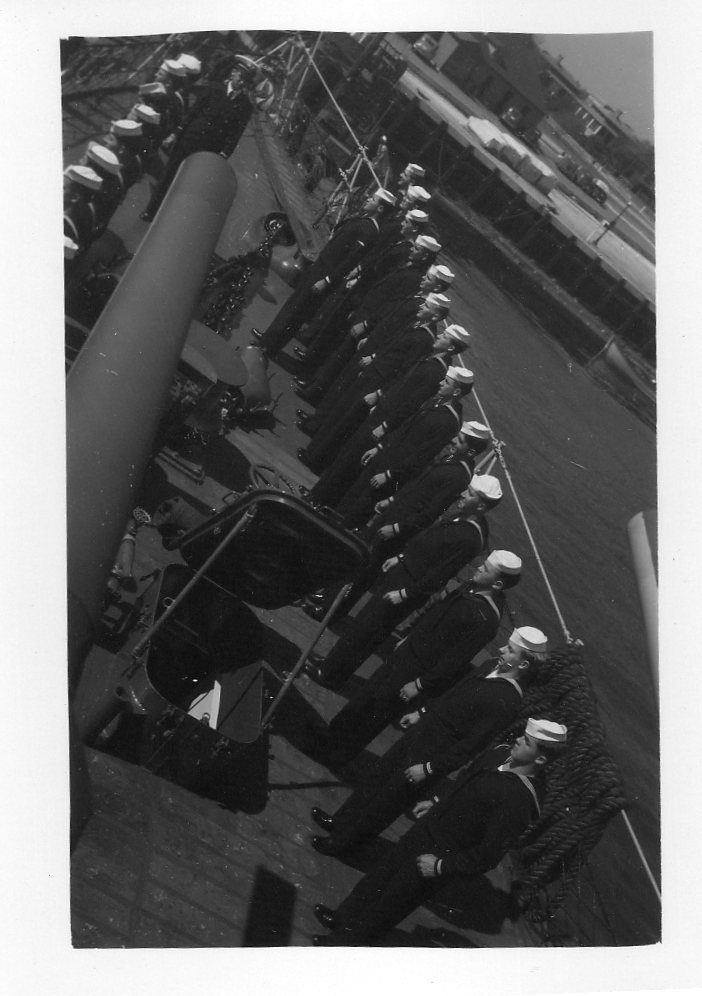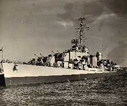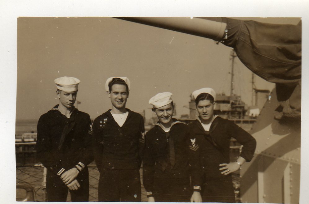 We are grateful to William Tolar, son of Thomas S. Tolar, LTjg 1945-1946, for finding these photos in family memorabilia in 2005, and sharing them with us. Ltjg Thomas Tolar is 7th from the left in the photo (#15) of the officers. Carl Lloyd (RM3 45-46) has recognized that most of the Tolar photos were likely taken at Pensacola in August 1945 where the change of command (Copeman to Parsons) took place. Gearing in its first year also visited Boston, Norfolk, Casco Bay and GTMO. The aircraft carrier in photo #19 is USS Ranger CV-4, which had a distinguished war record in the Atlantic Fleet and was decommissioned in October of 1946. Help is needed to identify the Gearing sailors in these photos. It is likely that most of them are plankowners. We will add captions to the photos as we learn the details. Email this web page editor, Don Provost donprov@optonline.net, with all the information you have! Mention each photo by its number. Photos #2, #3, #4, #5, #9, #13 #14, #15 and #18 have been updated with some names, thanks to Warren Groeneman (SOM2 45-46), Carl Lloyd (RM3 45-46), Dominick Giampietro (MM1 44-46) Art Jackson (RD2 45) and Fred Burkett (BKR2 45) and Ron Stephens, son of Benjamin Henry Stephens (S2c SK 45) and David Sullivan, son of Raymond John Sullivan (S2c 45). |